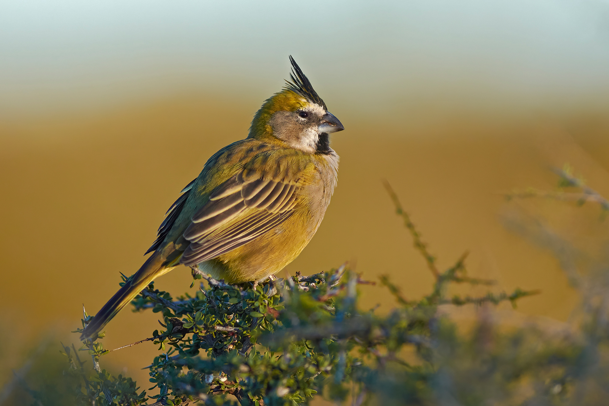 Pampas, Espinal and coastal birding around Bahía Blanca. Depending on season, targets may include Pampas Meadowlark, Bearded Tachuri, Hudson’s Black-Tyrant, Olrog’s Gull and Crested Gallito. Departure in Bahía Blanca.