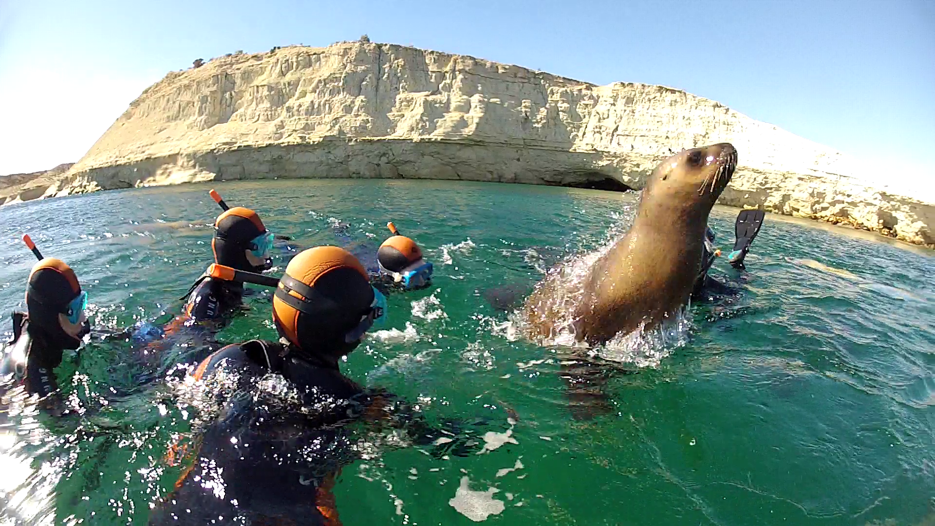 Sea lion snorkeling at the Punta Loma Nature Reserve is Puerto Madryn’s unmissable activity because it’s truly unique in the world. The site is home to a stable population of ~600 animals, free and wild. After a beautiful ~20-minute boat ride to the Reserve, we enter the water to enjoy an experience like no other: there is no other colony on record where animals approach and interact with people the way they do here.